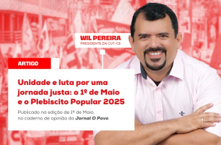 No Dia Internacional do Trabalhador e da Trabalhadora, o presidente da CUT Ceará, Wil Pereira, assina artigo no caderno de opinião do jornal O Povo com um chamado claro à luta coletiva: é hora de fortalecer a mobilização em defesa de uma jornada justa, da democracia e da participação popular.